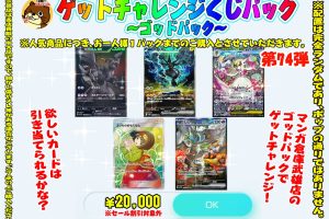 明日(11/17)朝10時より、ゲットチャレンジくじパック ゴッドパック・BOXゲットチャレンジを発売いたします!5パック限定!幸運を掴み取れ! ※人気商品により、おひとり様1パックまでの販売とさせていただきますのでご了…