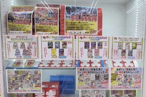 トレカコーナーでは、ポケカ・ワンピースカードの自販機・ガチャを全力稼働中! また、レジ前ショーケースでは各種くじパックを展開中! 豪華景品をご用意してお待ちしておりますので、ぜひ当店へお越しください☆
