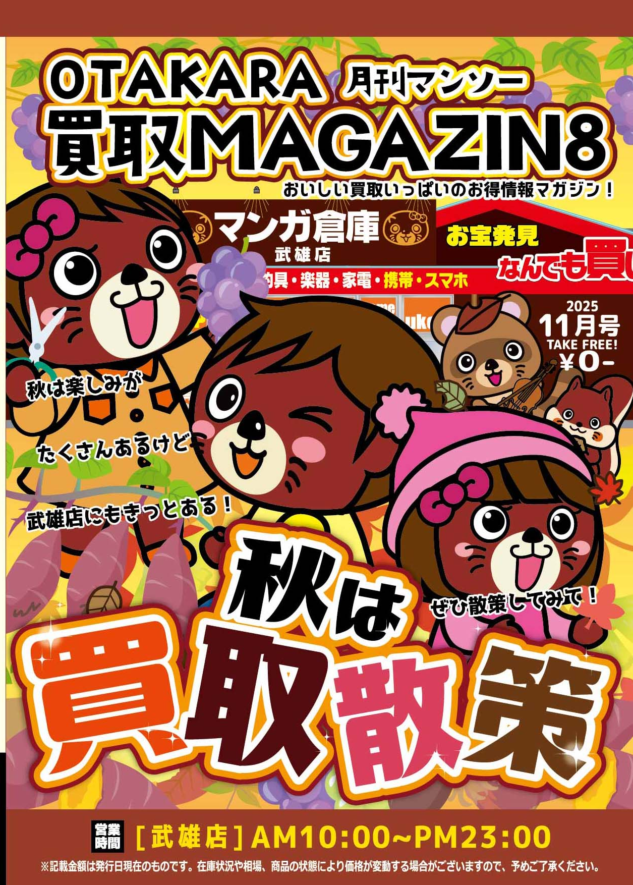 ★OTAKARA月刊マンソー 買取マガジン★ ⭐OTAKARA月刊マンソー 買取マガジン11月号出来ました🎋 こちら店頭にございます! TAKE FREEの0円ですので是非お持ち帰りくださいね(*’▽’) そしてそしてたくさんの買取のご利用おまちしております! ※上記買取は発行日現在のものとなります。 在庫状況は相場・商品状態により買取価は変動いたしますのでご了承くださいませ。