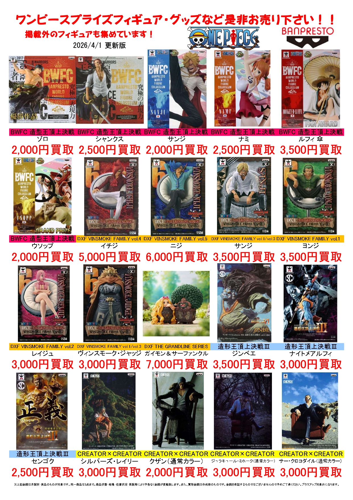 ワンピースカード 買取情報📢 ※2026/4/4現在の価格となります。 在庫状況などによってお...
