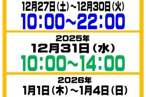 ★年末年始営業時間のお知らせ★