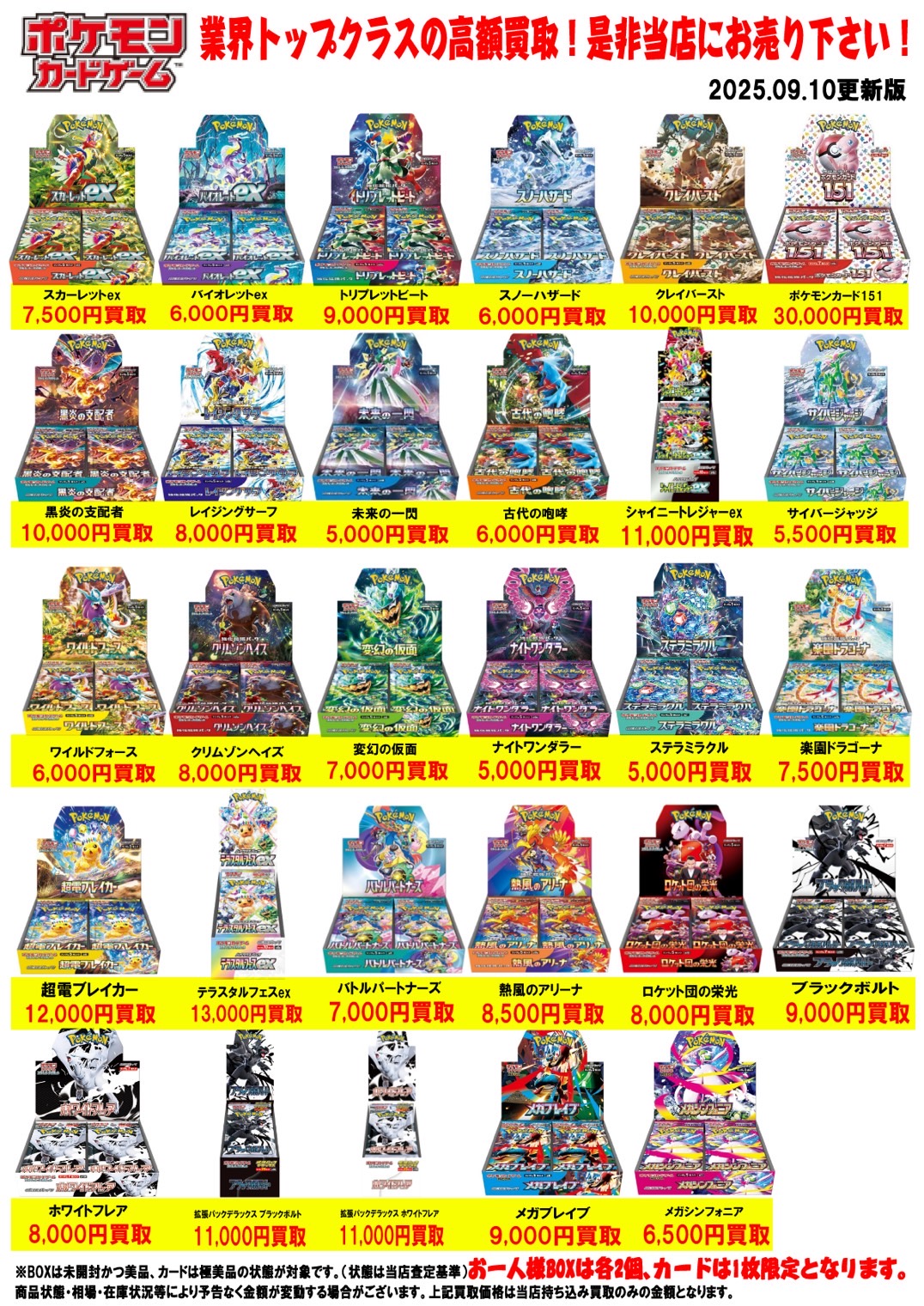 2025.09.10 買取情報 takalab_6 ◆ポケモンカード 買取情報更新しました!◆ Twitter Facebook はてブ LINE Pocket ポケモンカード 買取情報📣 ※2025/9/10現在の価格となります。 在庫状況などによってお値段が変動いたします。予めご了承ください。 **************** こちら↓もぜひチェックしてみてくださいね!(*´▽`*) ・最新のイベント情報はこちら ・最新の買取情報はこちら シェア! Twitter Facebook はてブ LINE Pocket feedly コメントを残す コメントをキャンセルメールアドレスが公開されることはありません。 ※ が付いている欄は必須項目ですコメント ※ 名前 ※ メール ※ サイト 新しいコメントをメールで通知 新しい投稿をメールで受け取る Δ このサイトはスパムを低減するために Akismet を使っています。コメントデータの処理方法の詳細はこちらをご覧ください。