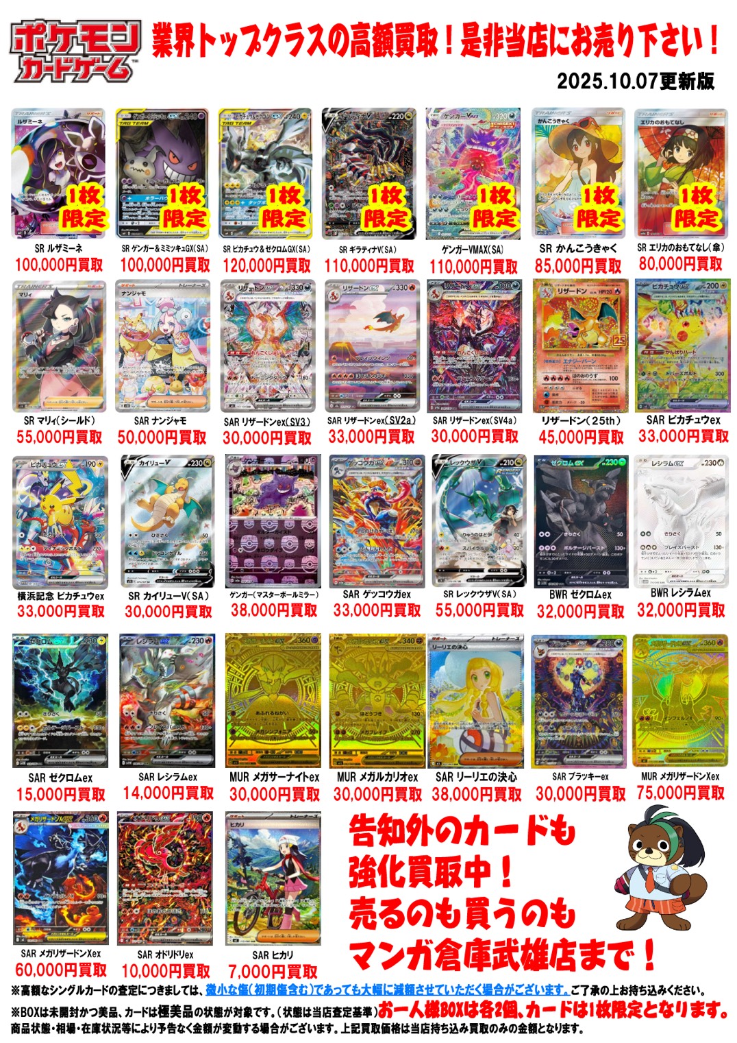 2025.10.07 買取情報 takalab_5 ポケモンカード買取告知更新しました! Twitter Facebook はてブ LINE Pocket ポケモンカード買取告知更新しました! ※2025/10/7現在の価格となります。 在庫状況などによってお値段が変動いたします。予めご了承ください。 **************** こちら↓もぜひチェックしてみてくださいね!(*´▽`*) ・最新のイベント情報はこちら ・最新の買取情報はこちら シェア! Twitter Facebook はてブ LINE Pocket feedly コメントを残す コメントをキャンセルメールアドレスが公開されることはありません。 ※ が付いている欄は必須項目ですコメント ※ 名前 ※ メール ※ サイト 新しいコメントをメールで通知 新しい投稿をメールで受け取る Δ このサイトはスパムを低減するために Akismet を使っています。コメントデータの処理方法の詳細はこちらをご覧ください。