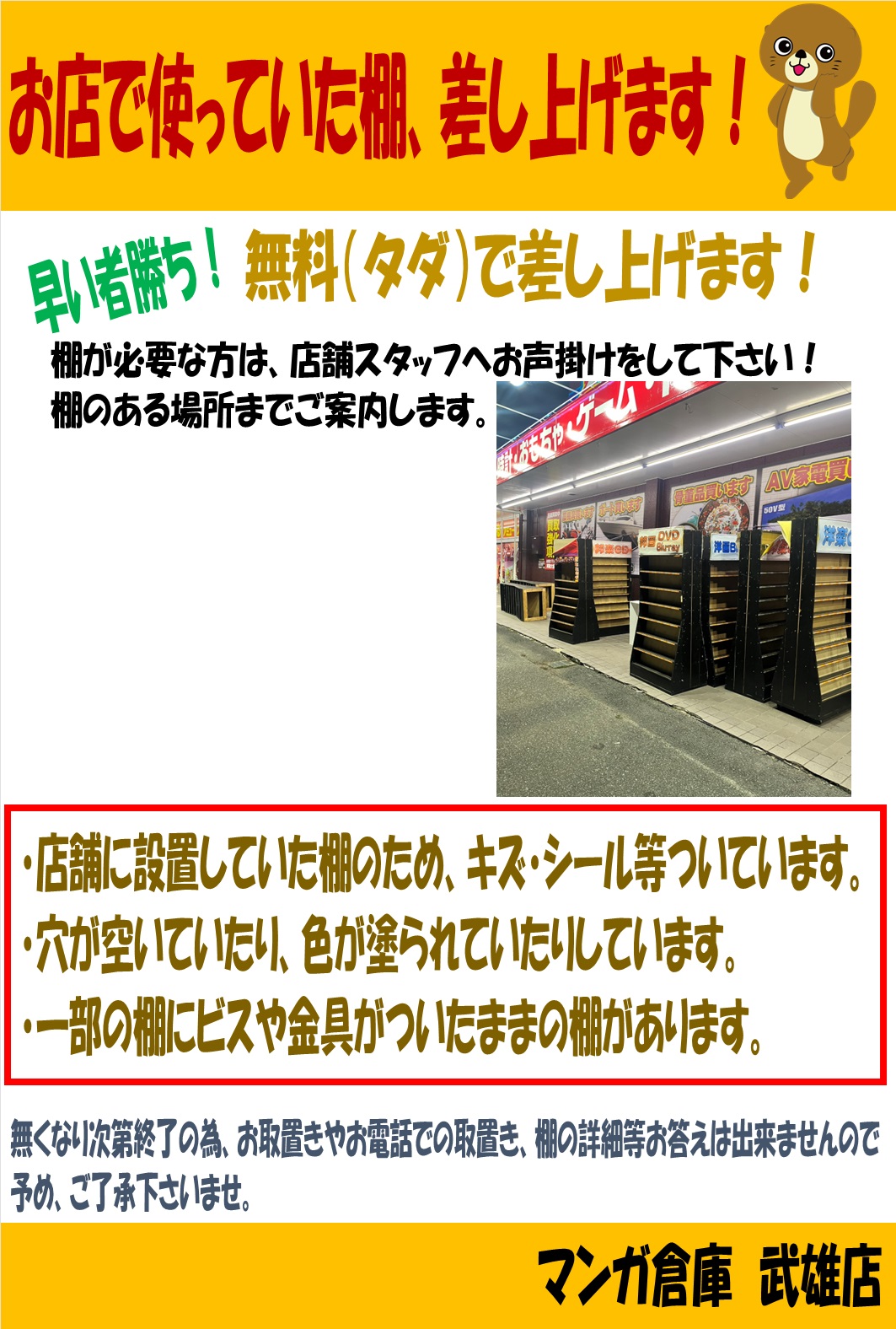 2025.10.09 お知らせ takalab_2 ★お店で使っていた棚を無料で差し上げます!★ Twitter Facebook はてブ LINE Pocket お店で使っていた棚を無料で差し上げます! まだまだ棚ありますよー! 注意事項:スタッフに一声かけて下さい。ビスや穴開き等ございます。 シェア! Twitter Facebook はてブ LINE Pocket feedly