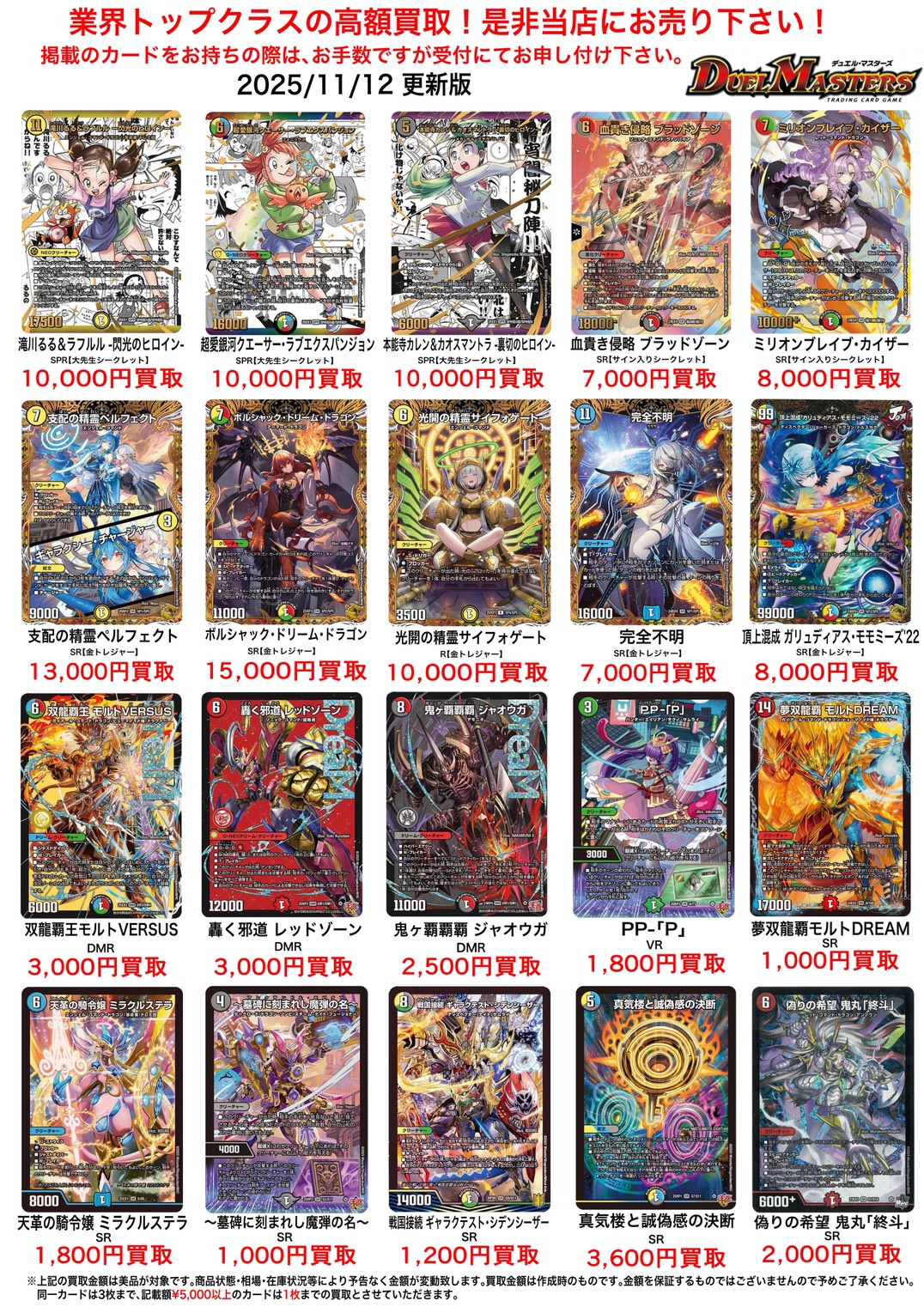 2025.11.13 買取情報 takalab_6 ◆デュエルマスターズ 遊戯王買取情報更新しました!◆ Twitter Facebook はてブ LINE Pocket ★買取情報★ ※2025/11/13現在の価格となります。 在庫状況などによってお値段が変動いたします。予めご了承ください。 **************** こちら↓もぜひチェックしてみてくださいね!(*´▽`*) ・最新のイベント情報はこちら ・最新の買取情報はこちら シェア! Twitter Facebook はてブ LINE Pocket feedly コメントを残す コメントをキャンセルメールアドレスが公開されることはありません。 ※ が付いている欄は必須項目ですコメント ※ 名前 ※ メール ※ サイト 新しいコメントをメールで通知 新しい投稿をメールで受け取る Δ このサイトはスパムを低減するために Akismet を使っています。コメントデータの処理方法の詳細はこちらをご覧ください。
