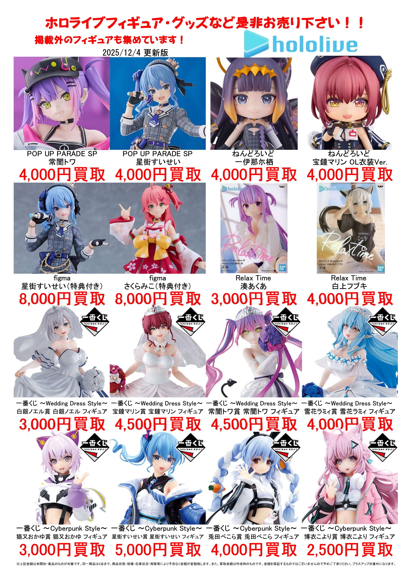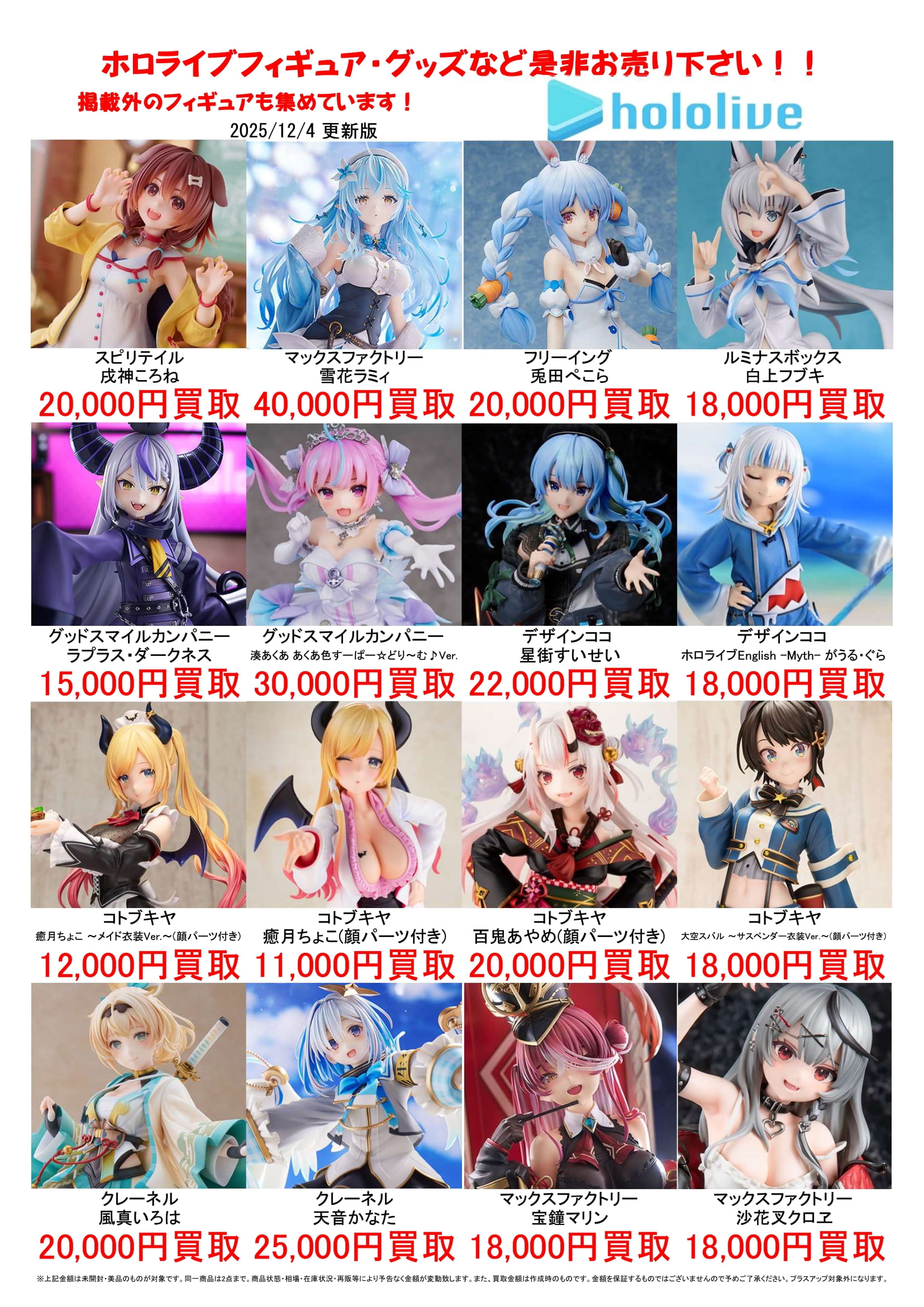 2025.12.04 買取情報 takalab_5 ■ホロライブ・ワンピース・進撃の巨人フィギュア買取告知更新しました!■ Twitter Facebook はてブ LINE Pocket ホロライブ・ワンピース・進撃の巨人フィギュア買取告知更新しました! ※2025/12/4現在の価格となります。 在庫状況などによってお値段が変動いたします。予めご了承ください。 **************** こちら↓もぜひチェックしてみてくださいね!(*´▽`*) ・最新のイベント情報はこちら ・最新の買取情報はこちら シェア! Twitter Facebook はてブ LINE Pocket feedly コメントを残す コメントをキャンセルメールアドレスが公開されることはありません。 ※ が付いている欄は必須項目ですコメント ※ 名前 ※ メール ※ サイト 新しいコメントをメールで通知 新しい投稿をメールで受け取る Δ このサイトはスパムを低減するために Akismet を使っています。コメントデータの処理方法の詳細はこちらをご覧ください。