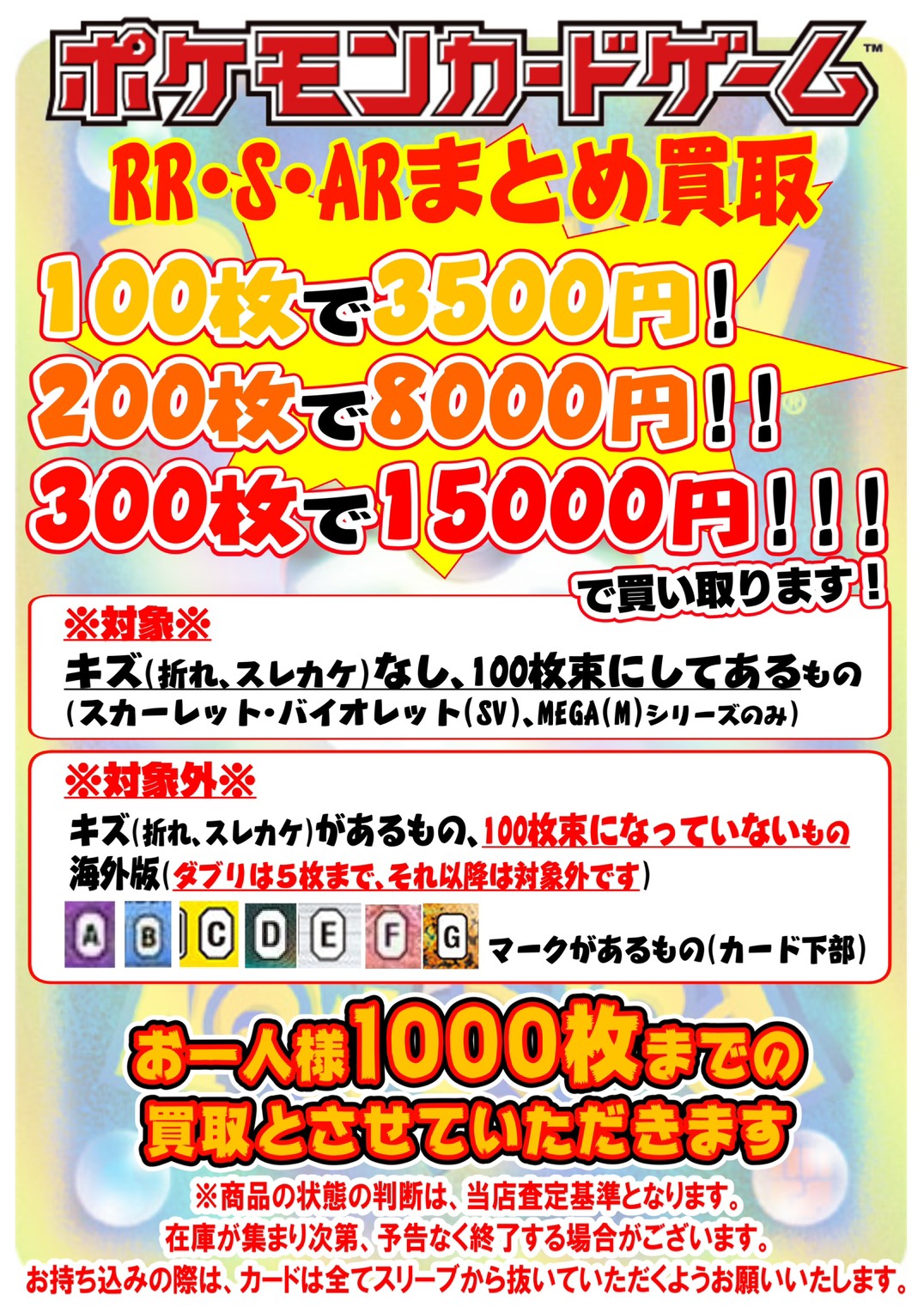 RR・S・ARを100枚束にしてお持ちいただくと、通常の買取からプラスアップいたします!