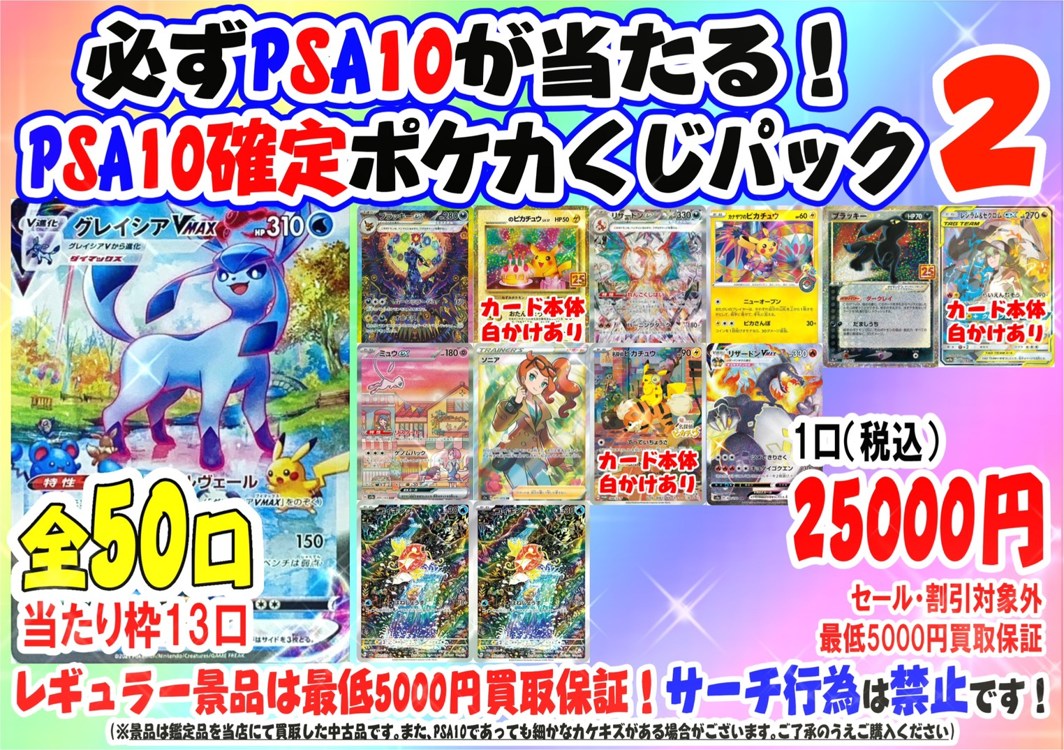 2026.03.07 カード takalab_1 ★ポケカ PSA10確定ゲットチャレンジ2販売開始★#TCG #ポケモンカードゲーム #佐賀 #武雄 #マンガ倉庫 Twitter Facebook はてブ LINE Pocket 「ポケカ PSAゲットチャレンジ2」を発売いたしました! 1口20,000円、全50口!景品は全てPSA10確定です✨ 現品限り・早い者勝ち・売り切れ御免!!ぜひぜひお早めにお買い求めください✨ レジ前ショーケースにはこの他にもポケカお楽しみ袋などをご用意しております!ぜひ一度挑戦してみてください! シェア! Twitter Facebook はてブ LINE Pocket feedly