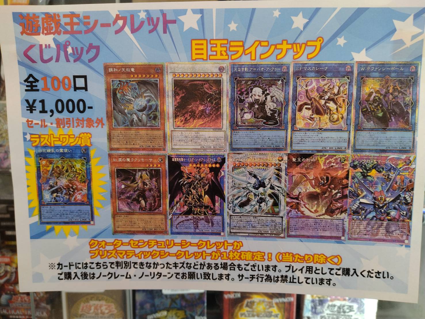 2026.03.14 カード takalab_5 ★遊戯王1000円くじパック販売開始!★ #TCG #遊戯王 #佐賀 #武雄 #マンガ倉庫 Twitter Facebook はてブ LINE Pocket 遊戯王の1000円くじパックの販売を開始致しました! 全100口、プリズマティックシークレットもしくはクォーターセンチュリーシークレットが1枚確定!(当たり除く) 当たりには豪華景品をご用意致しました! 最後の1パックをご購入の方にはラストワン賞もご用意! この機会にぜひ当店へご来店ください! シェア! Twitter Facebook はてブ LINE Pocket feedly