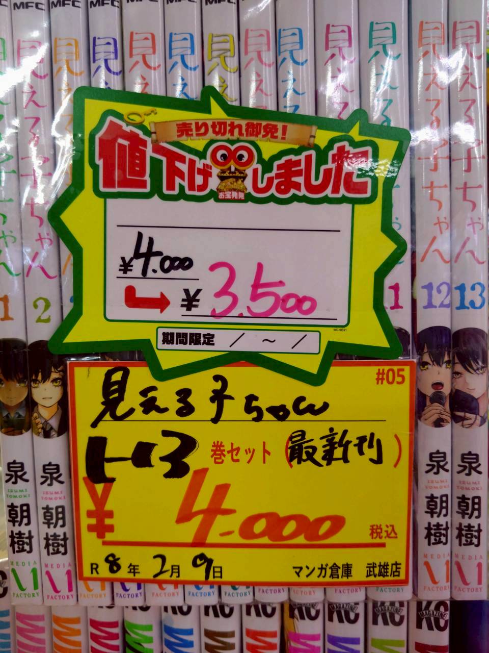 2026.03.25 コミック/書籍 takalab_4 ■大人気セットコミック大量お値下げ中!!■ #人気セットコミック #マンガ倉庫 #マンガ倉庫武雄店 #佐賀県 #武雄市 Twitter Facebook はてブ LINE Pocket 今!!!マンガ倉庫武雄店では!!! アニメ化やドラマ化、映画化された大人気コミックを大量お値下げ中!! 今まで買うのを諦めていた人気セットコミックを手に入れるチャンス!! 早い者勝ちですのでぜひ、マンガ倉庫武雄店まで足を運んでください! シェア! Twitter Facebook はてブ LINE Pocket feedly