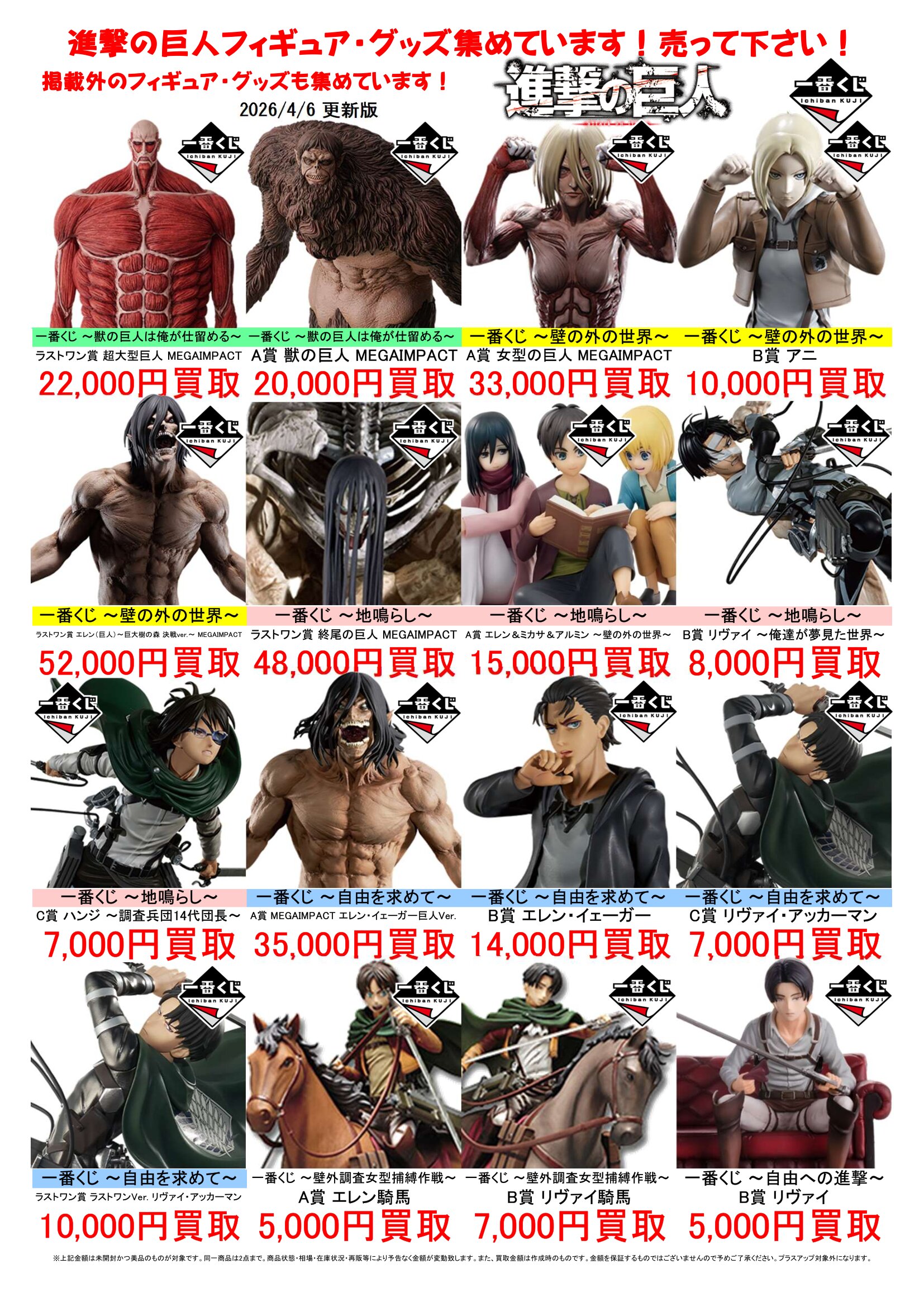 2026.04.06 買取情報 takalab_4 ★進撃の巨人フィギュア買取告知更新しました!★ Twitter Facebook はてブ LINE Pocket ★進撃の巨人フィギュア買取告知更新しました!★ ※2026/4/6現在の価格となります。 在庫状況などによってお値段が変動いたします。予めご了承ください。 **************** こちら↓もぜひチェックしてみてくださいね!(*´▽`*) ・最新のイベント情報はこちら ・最新の買取情報はこちら シェア! Twitter Facebook はてブ LINE Pocket feedly コメントを残す コメントをキャンセルメールアドレスが公開されることはありません。 ※ が付いている欄は必須項目ですコメント ※ 名前 ※ メール ※ サイト 新しいコメントをメールで通知 新しい投稿をメールで受け取る Δ このサイトはスパムを低減するために Akismet を使っています。コメントデータの処理方法の詳細はこちらをご覧ください。