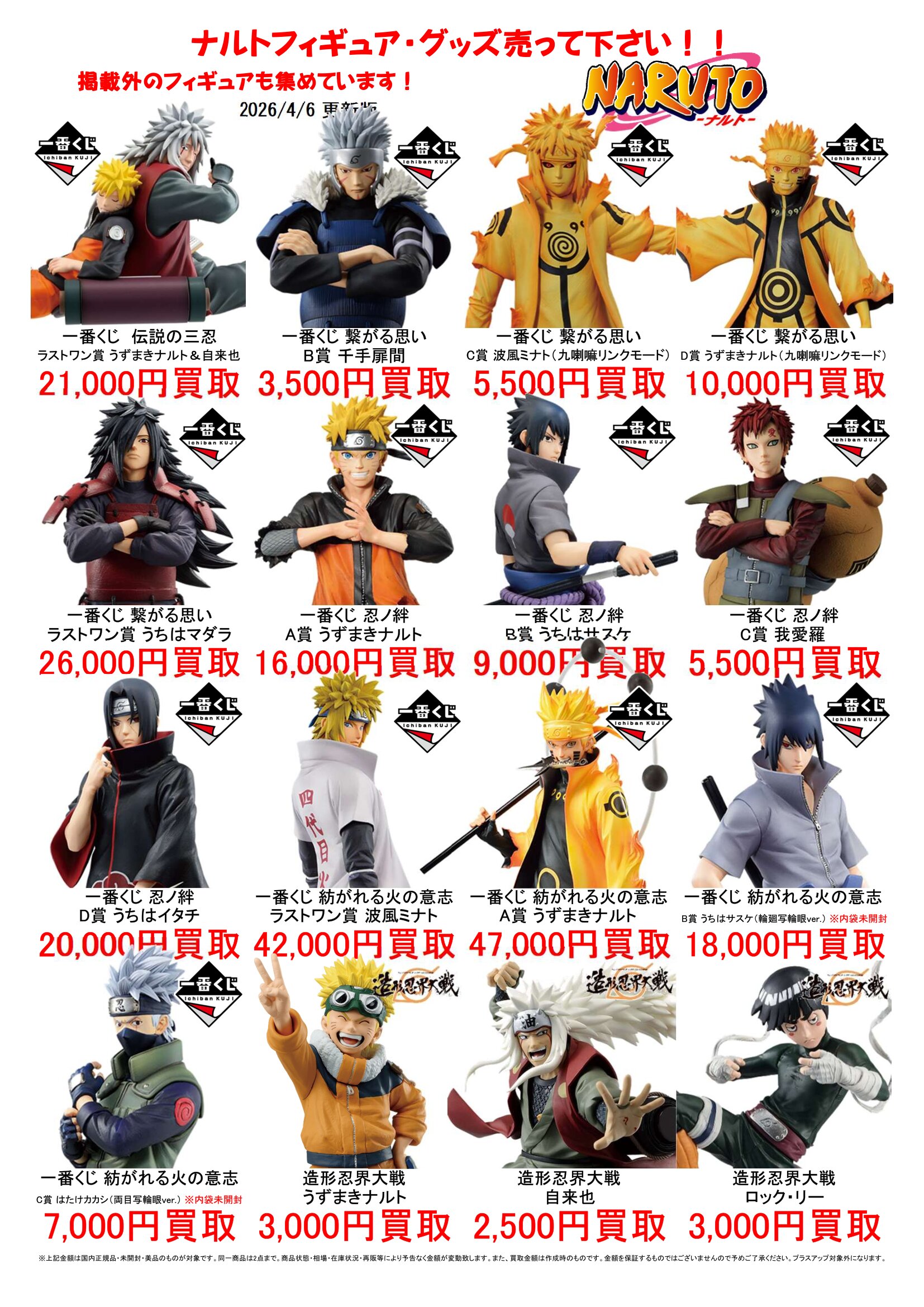 2026.04.06 買取情報 takalab_4 ★ナルトフィギュア買取告知更新しました!★ Twitter Facebook はてブ LINE Pocket ★ナルトフィギュア買取告知更新しました!★ ※2026/4/6現在の価格となります。 在庫状況などによってお値段が変動いたします。予めご了承ください。 **************** こちら↓もぜひチェックしてみてくださいね!(*´▽`*) ・最新のイベント情報はこちら ・最新の買取情報はこちら シェア! Twitter Facebook はてブ LINE Pocket feedly コメントを残す コメントをキャンセルメールアドレスが公開されることはありません。 ※ が付いている欄は必須項目ですコメント ※ 名前 ※ メール ※ サイト 新しいコメントをメールで通知 新しい投稿をメールで受け取る Δ このサイトはスパムを低減するために Akismet を使っています。コメントデータの処理方法の詳細はこちらをご覧ください。