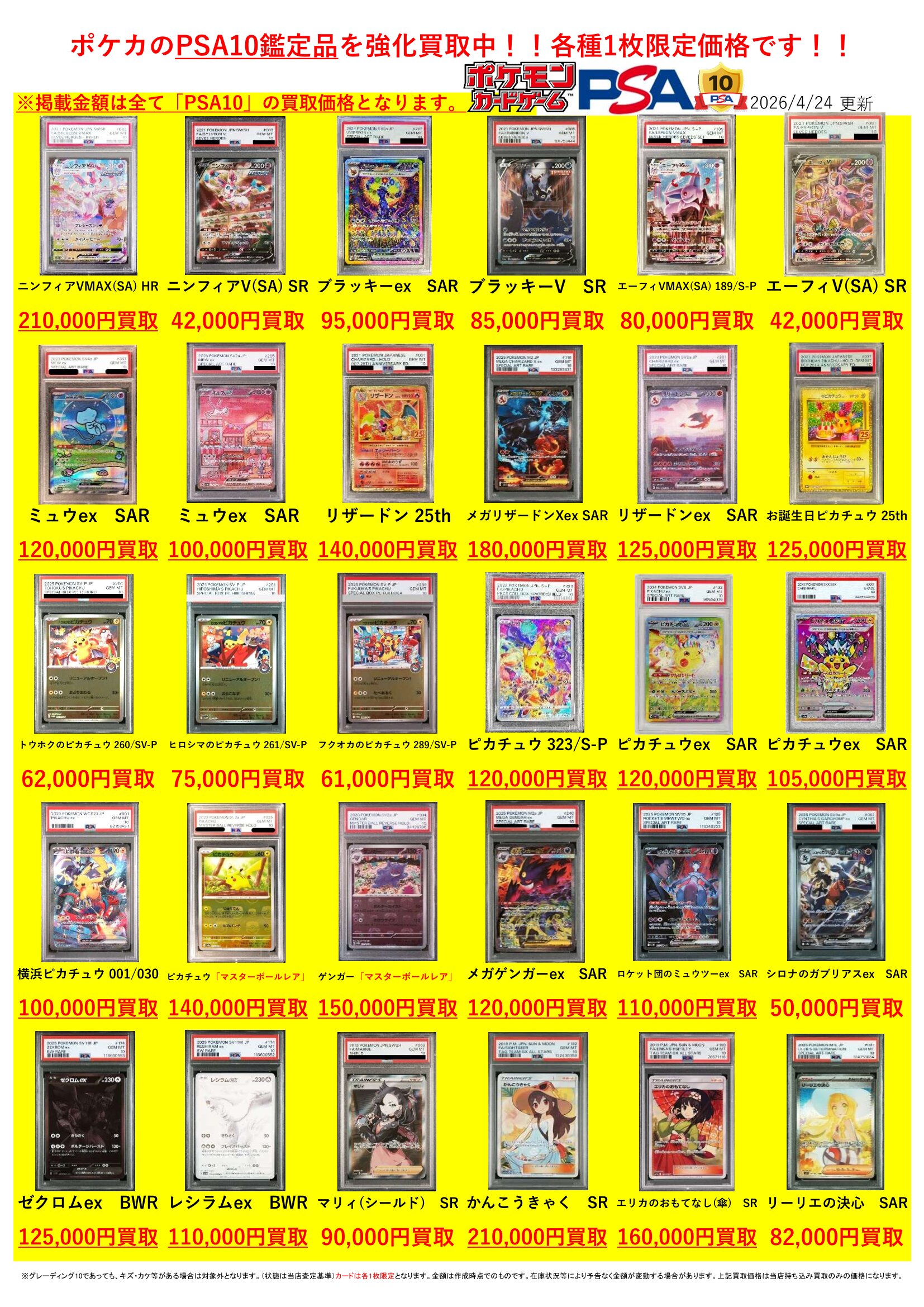 2026.04.24 買取情報 takalab_2 ★ポケモンカードPSA10買取告知★ Twitter Facebook はてブ LINE Pocket ★買取情報★ ※2026/〇/〇現在の価格となります。 在庫状況などによってお値段が変動いたします。予めご了承ください。 **************** こちら↓もぜひチェックしてみてくださいね!(*´▽`*) ・最新のイベント情報はこちら ・最新の買取情報はこちら シェア! Twitter Facebook はてブ LINE Pocket feedly コメントを残す コメントをキャンセルメールアドレスが公開されることはありません。 ※ が付いている欄は必須項目ですコメント ※ 名前 ※ メール ※ サイト 新しいコメントをメールで通知 新しい投稿をメールで受け取る Δ このサイトはスパムを低減するために Akismet を使っています。コメントデータの処理方法の詳細はこちらをご覧ください。