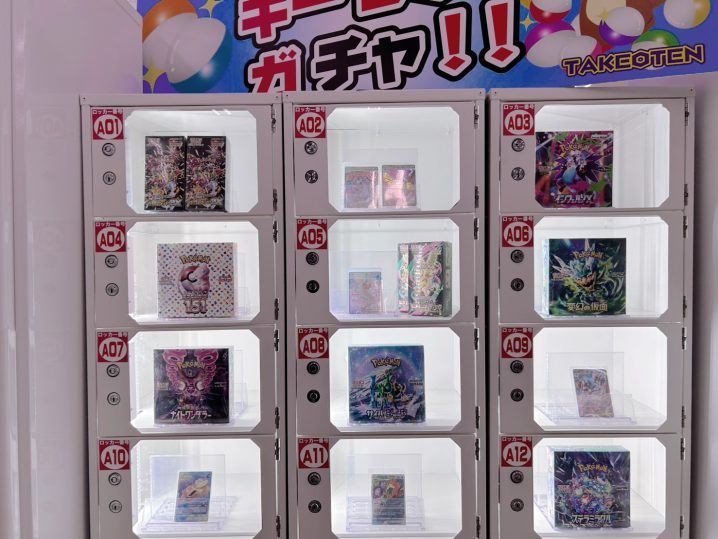 ★ポケカロッカー自販機景品更新★ 今回も豪華景品をご用意!最新弾「MEGAドリームex」のボックス・カードも投入中デス☆ ぜひ一度チャレンジしてみてください!