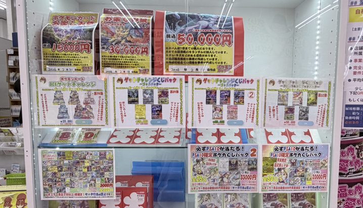 ★ポケカくじパック販売中★ レジ前ショーケースにて、ポケカくじパック・お楽しみ袋を販売中です! 1パック200円のリーズナブルなものから一発50000円のどデカいものまで! ぜひぜひ一度当店で挑戦してみてください! &n…