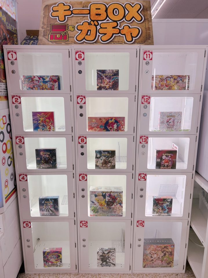 トレカコーナーでは、ポケカ・ワンピースカードの自販機・ガチャを全力稼働中! また、レジ前ショーケースでは各種くじパックを展開中! 豪華景品をご用意してお待ちしておりますので、ぜひ当店へお越しください☆