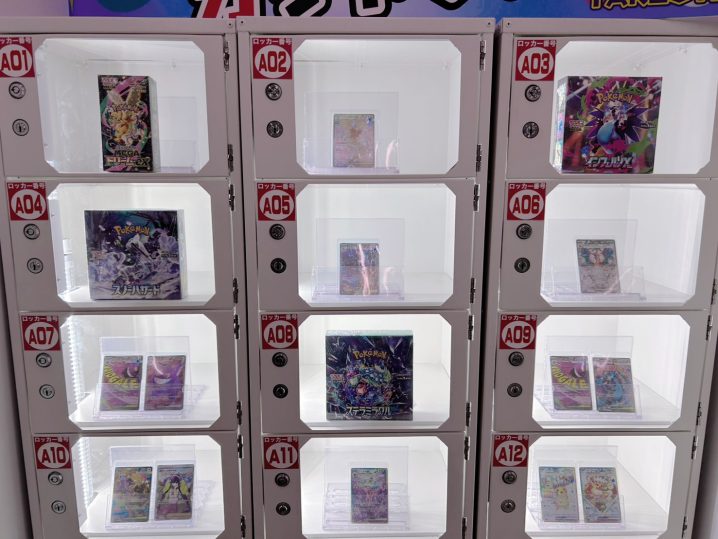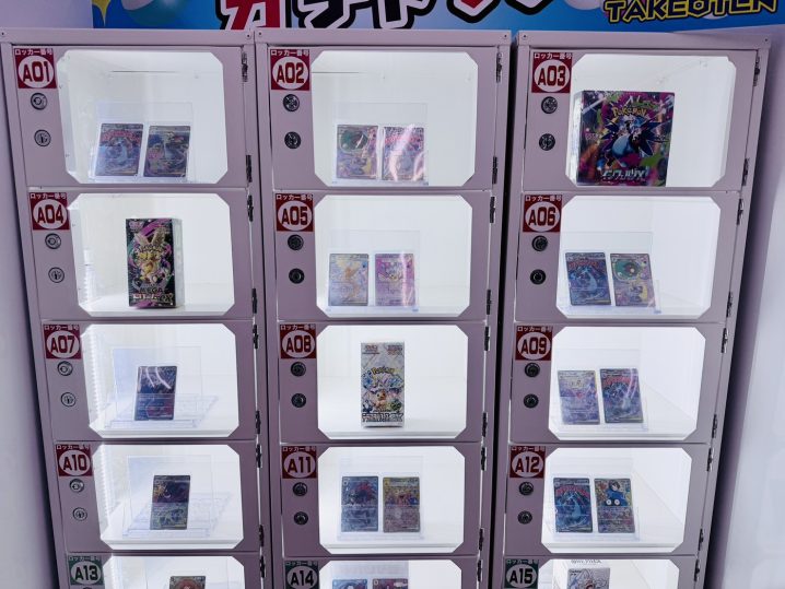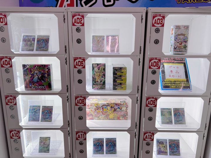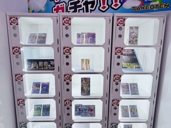 ★ポケカロッカー自販機景品更新★ 今回も豪華景品をご用意!最新弾「MEGAドリームex」のカード投入中デス☆ ぜひ一度チャレンジしてみてください!
