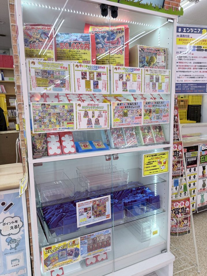 レジ前ショーケースでは各種トレカくじパック・お楽しみ袋を大展開中! 豪華景品をご用意してお待ちしておりますので、ぜひ当店へお越しください☆