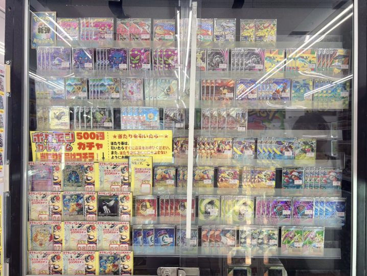 ★ポケカロッカー自販機景品更新★ 今回も豪華景品をご用意! 最新弾「MEGAドリームex」のボックス・カードも投入中デス☆ ぜひ一度チャレンジしてみてください!