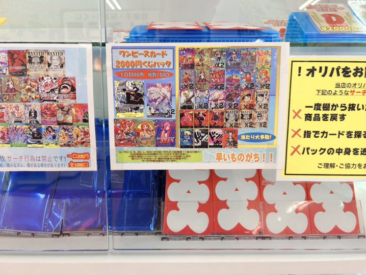 ワンピースカードくじパック販売開始です! 1口2000円、全150口! 当たり枠50個封入してます!それ以外にも確定でパラレルのSR.Rが入ってます!早い者勝ちです! ぜひぜひお買い求めください✨ レジ前シ…