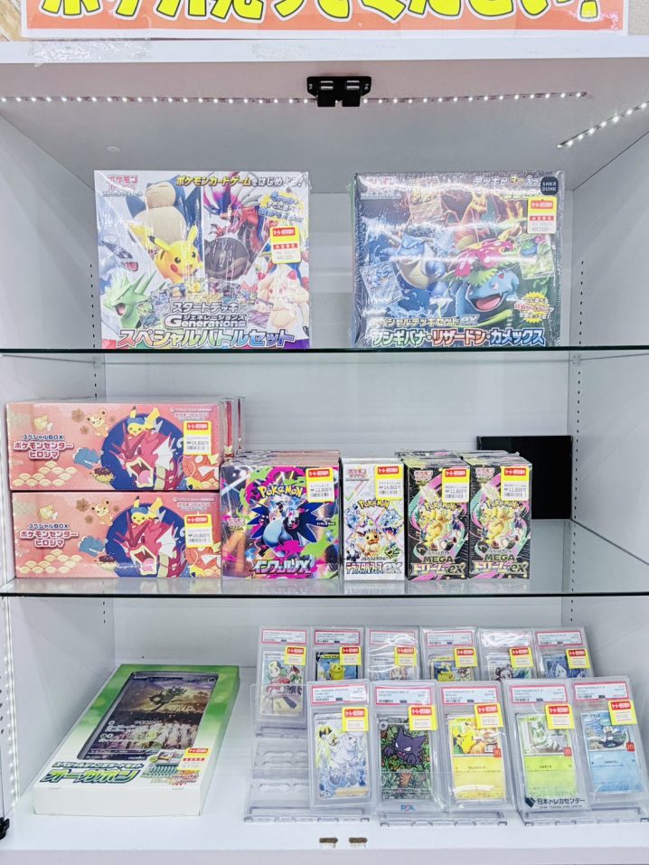 トレカコーナーショーケースにて、 ポケモンカードの未開封ボックス・スペシャルBOX・PSA鑑定品等を展開しております! いずれもショーケース内現品のみとなりますので、お早めにお買い求めください☆