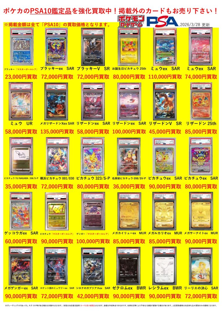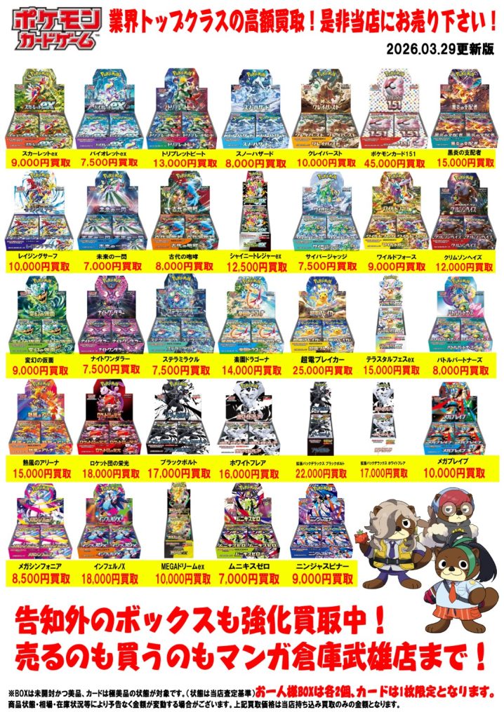 ポケモンカード買取告知更新しました! ※2026/3/22現在の価格となります。 在庫状況などによってお値段が変動いたします。予めご了承ください。 **************** こちら↓もぜひチェックしてみてください…