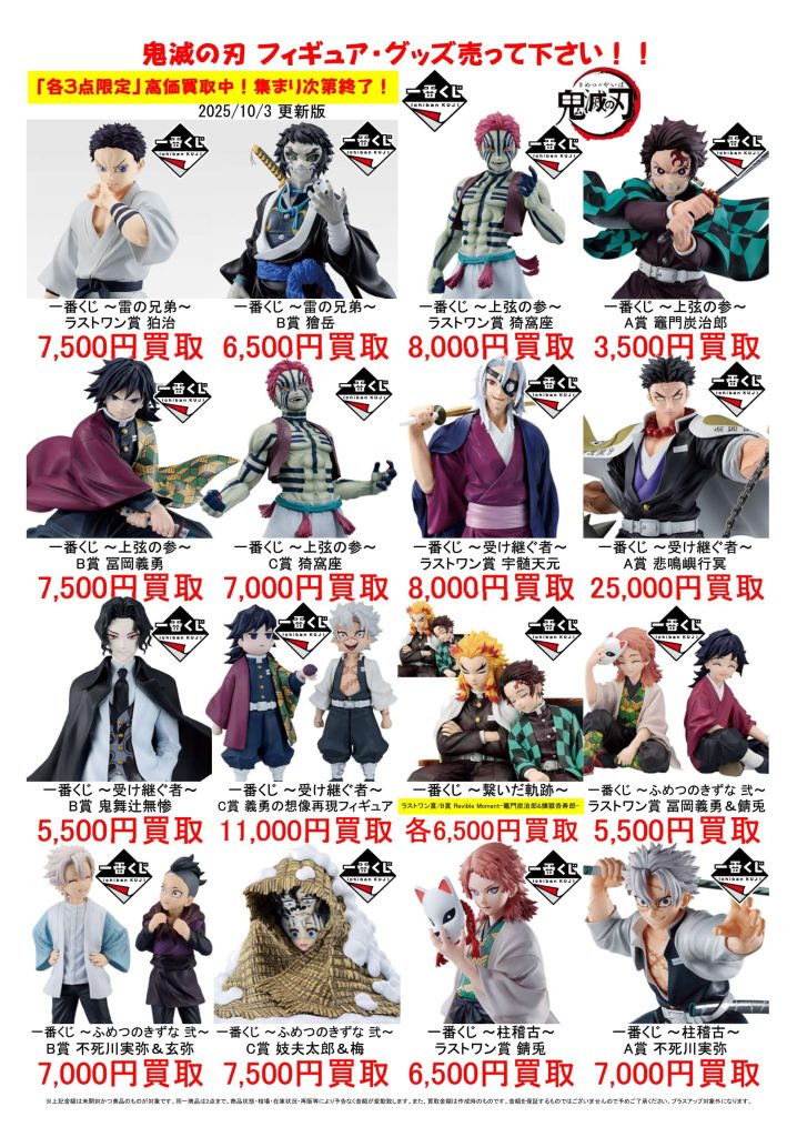 鬼滅の刃フィギュア買取告知更新しました! ※2025/10/3現在の価格となります。 在庫状況などによってお値段が変動いたします。予めご了承ください。 **************** こちら↓もぜひチェックしてみてくだ…