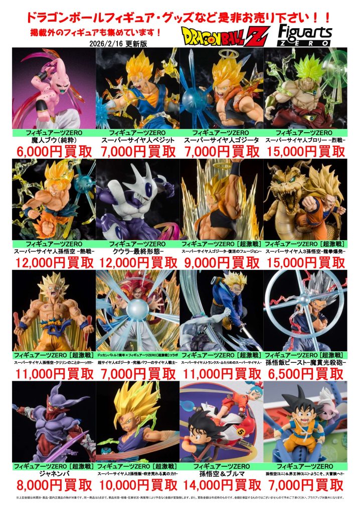 ドラゴンボールフィギュア買取告知更新しました! ※2026/2/16現在の価格となります。 在庫状況などによってお値段が変動いたします。予めご了承ください。 **************** こちら↓もぜひチェックしてみ…