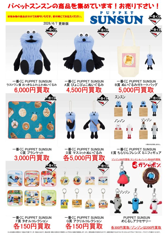 ■パペットスンスンの商品を集めています!◆#パペットスンスン #パペットスンスン買取 #スンスン #ノンノン #ゾンゾン #一番くじ買取 #マンガ倉庫 #武雄 #佐賀■