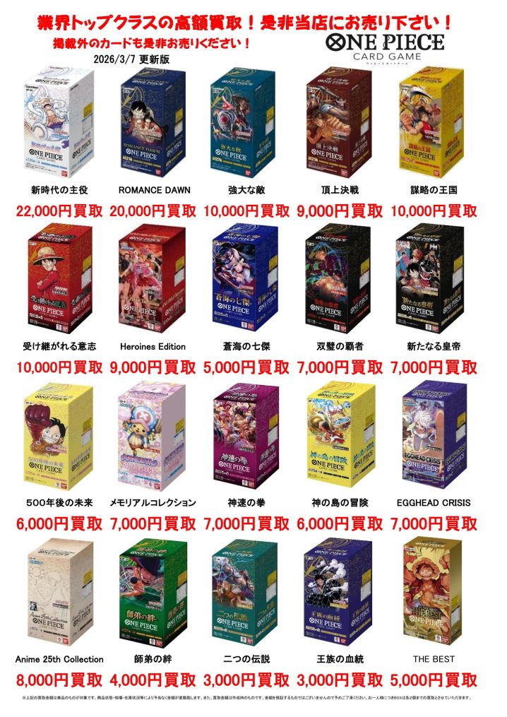 ワンピースカード 買取情報📢 ※2026/3/7現在の価格となります。 在庫状況などによってお値段が変動いたします。予めご了承ください。 **************** こちら↓もぜひチェックしてみてく…